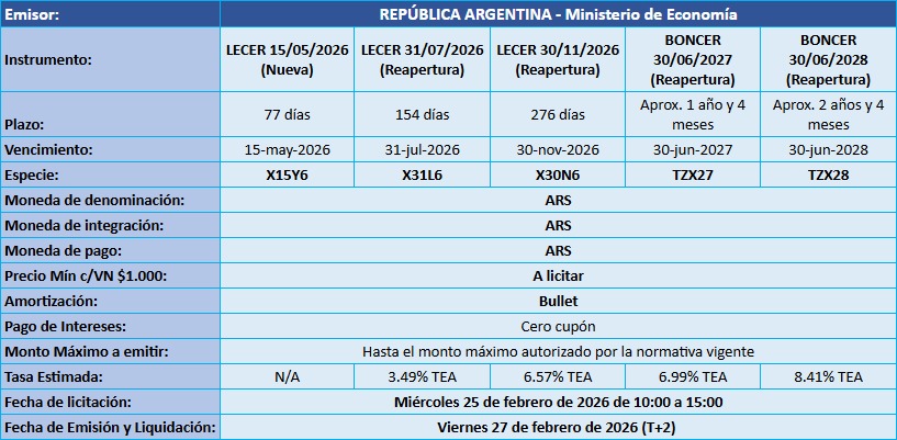 Fecha de liquidación: Viernes 27 de febrero de 2026 (T+2)