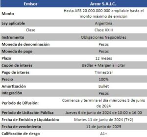 Petrini Valores informa los principales términos y condiciones de la nueva emisión de Obligaciones Negociables de Arcor S.A.I.C.